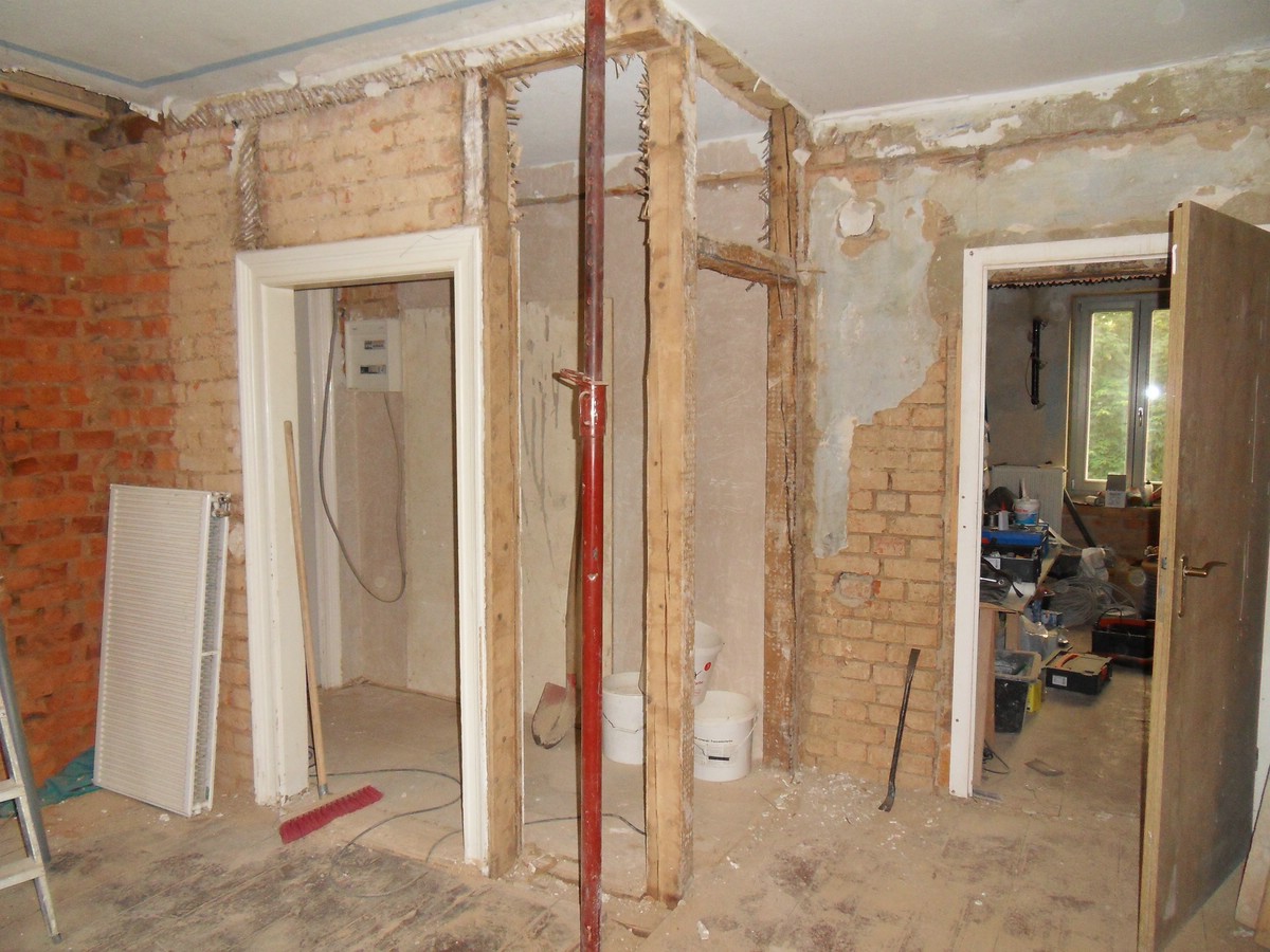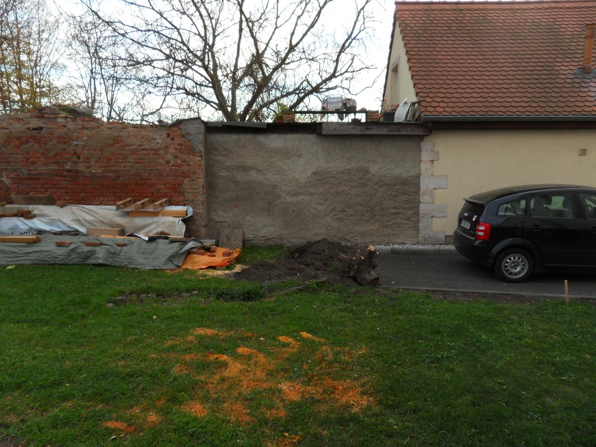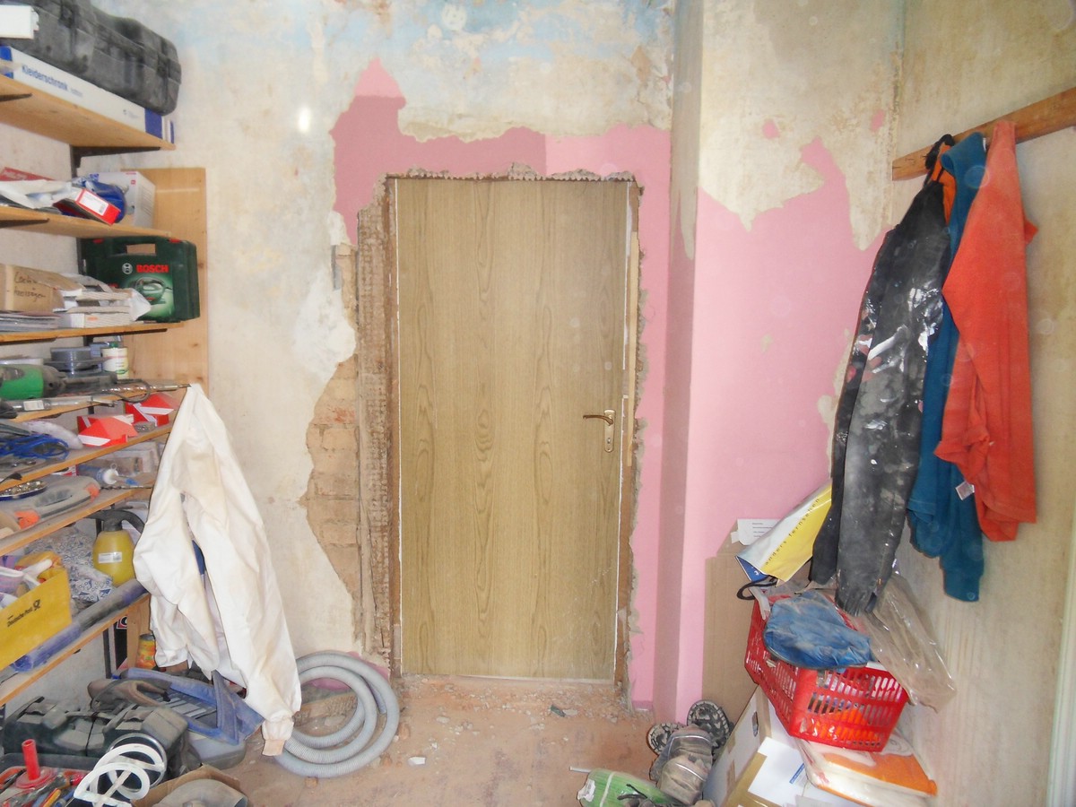 Die Tage stand ein lustiges Auto bei uns vorm Haus. Im Schuppen wachsen die Wände in die Höhe. Der Nachbar hat seine Schuppenwand verputzt und auch ein Dach drauf gemacht. Der Graben für den Strom Schuppen/Parkplatz hat endlich das Haus erreicht. Ramon hat die Wohnung nebenan noch weiter entkernt und Platz für die Kabel im Treppenhaus geschaffen.