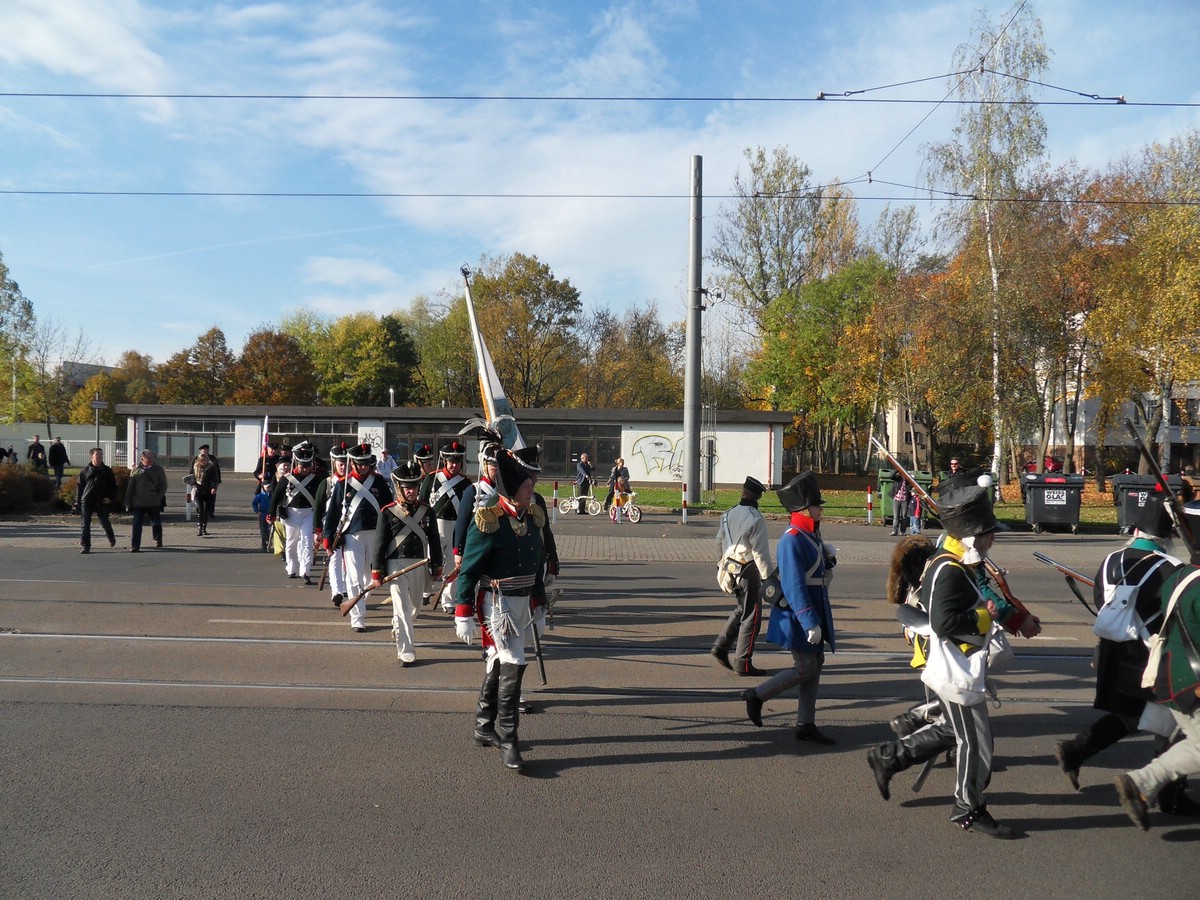 Letztes Wochenende waren wir aber im Kriegsgebiet. Es wurde die Völkerschlacht nachgestellt. Zum 200 Jahrestag bissel mehr Publikum und Kriegsspieler als normal. Wegen dem Publikum hat man aber vorsichtshalber das Elend weggelassen. So gab es hübsche Uniformen, bissel Rumgeballere und Rummarschieren.