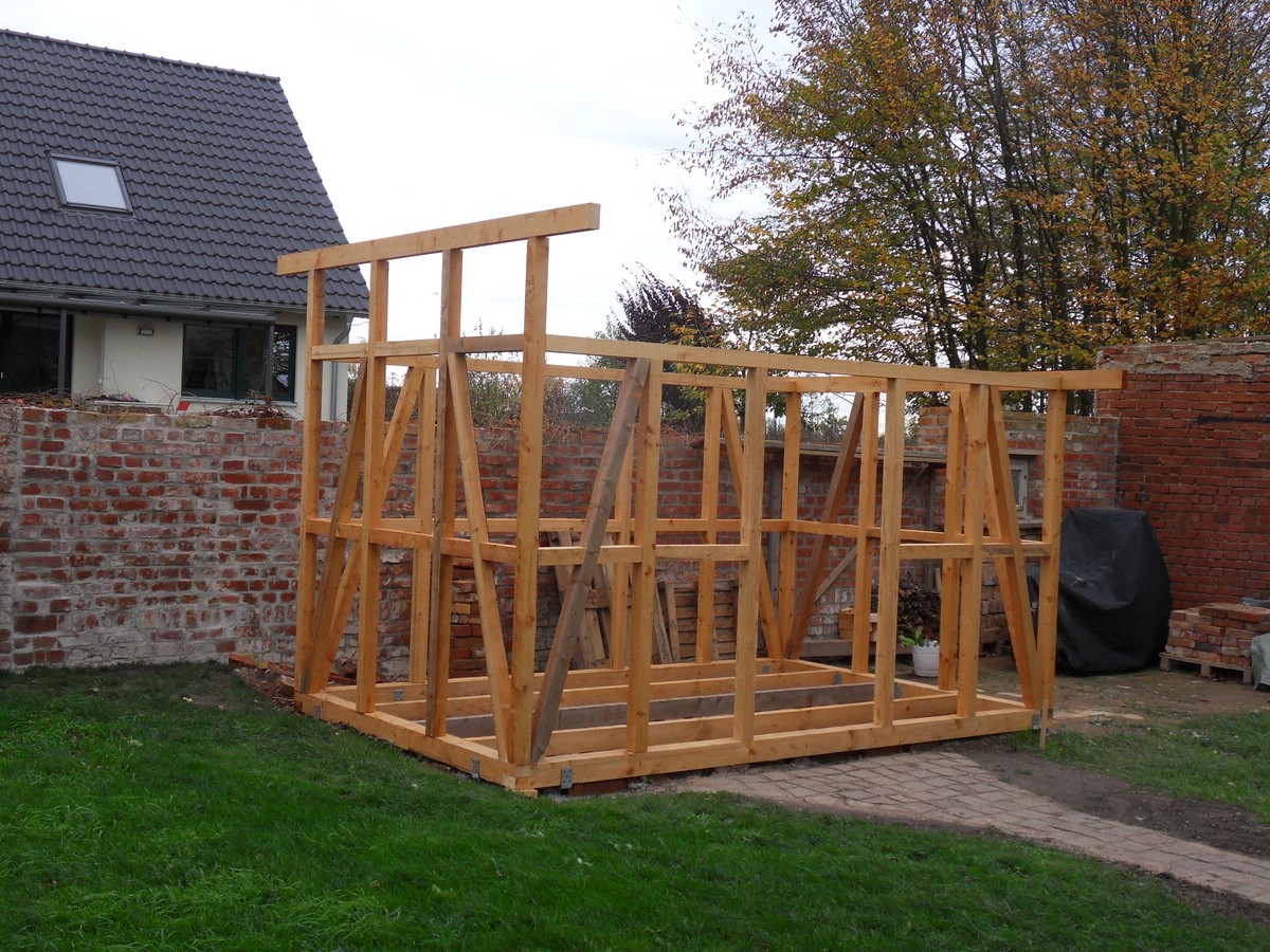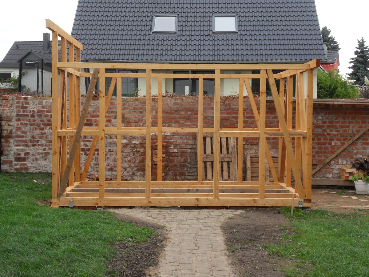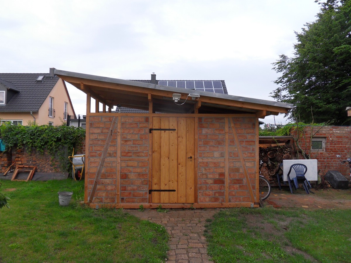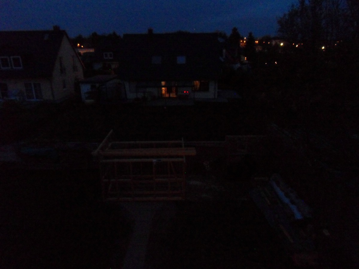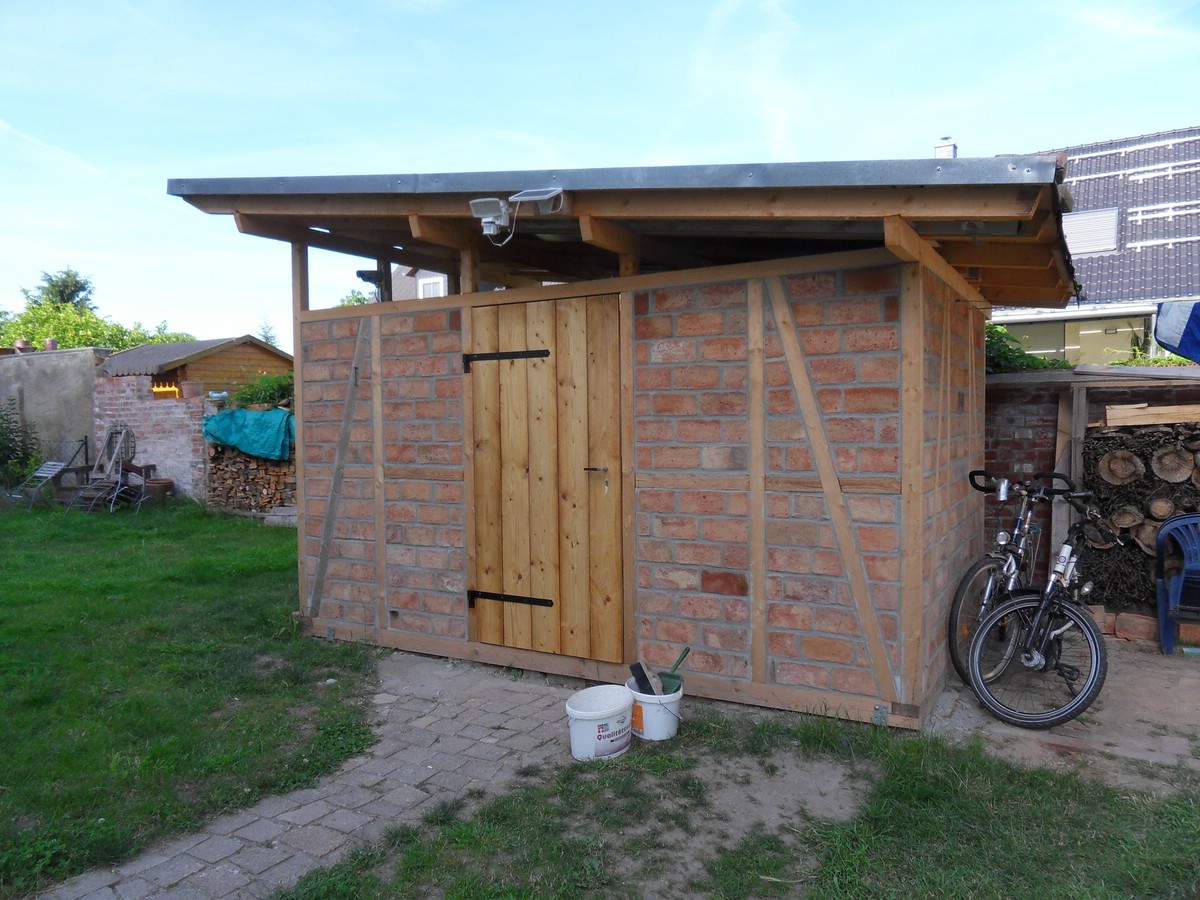 Auf dem Hof ist der zukünftige Schuppen zu erkennen. Dirk hat mir am Samstag beim Aufbau geholfen. Jetzt fehlt noch Dach, Wand und Tür …
