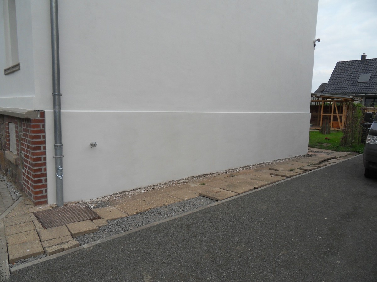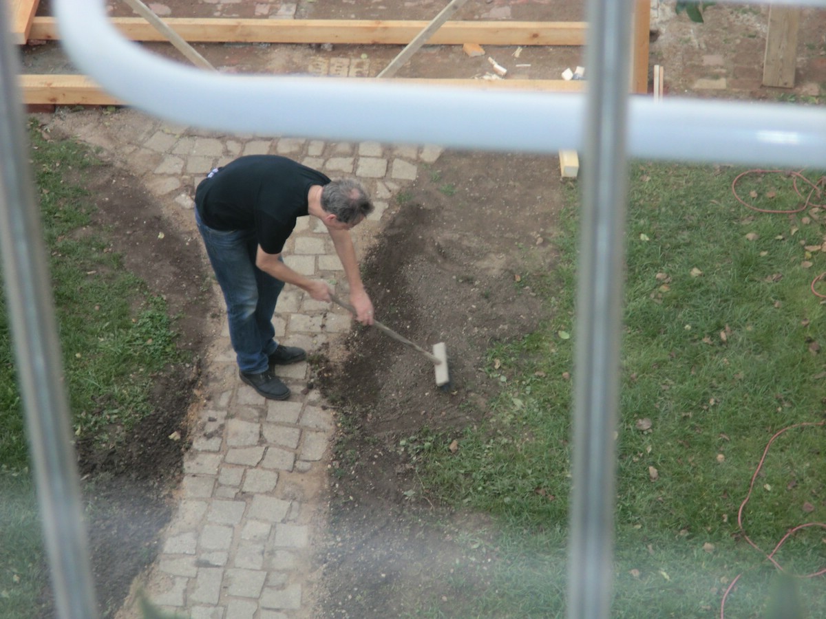 Leider haben wir uns vom Tiefbauer trennen müssen. Nun warten paar Pflastersteine darauf wieder im Fußweg verlegt zu werden.