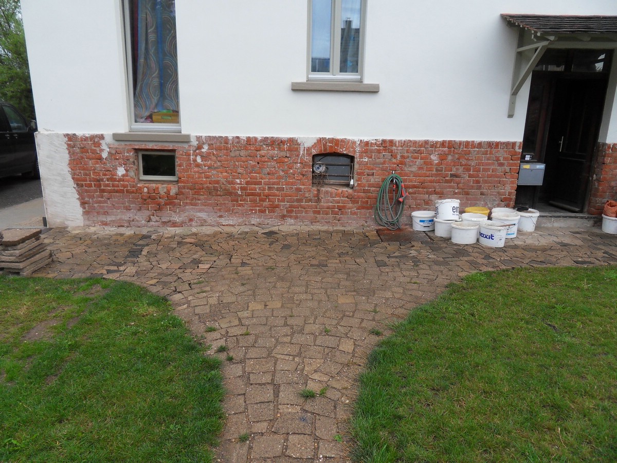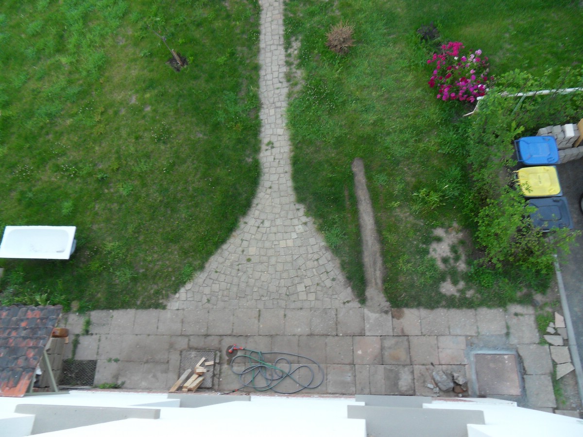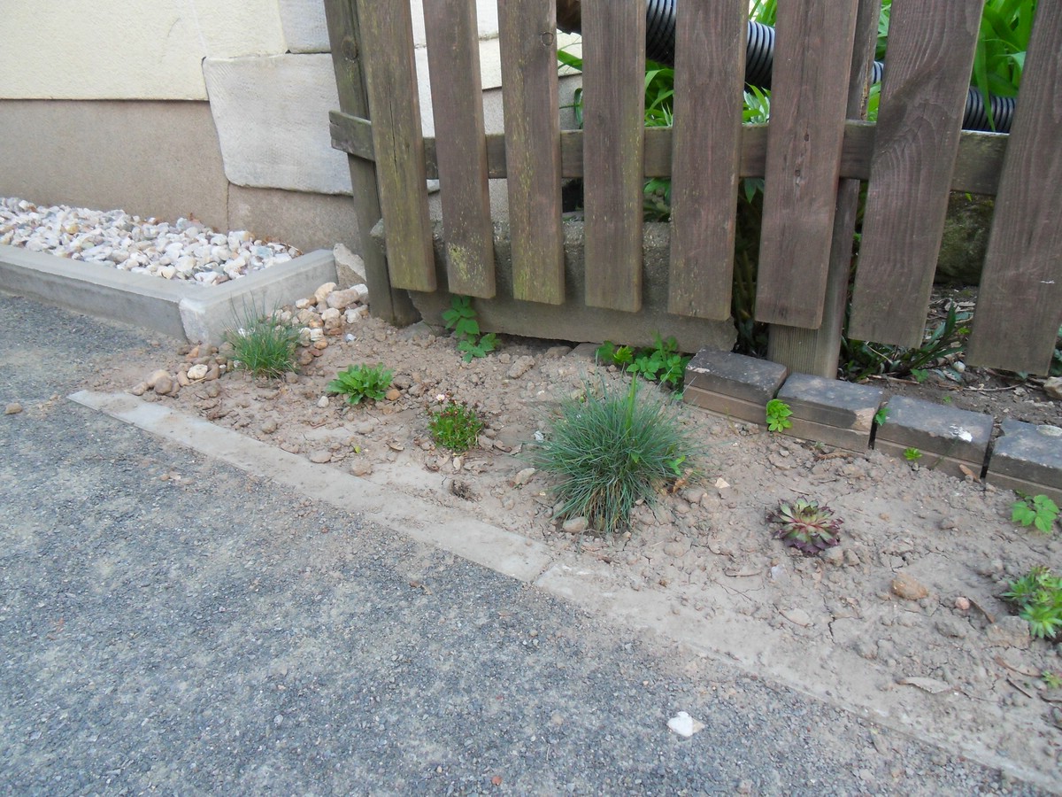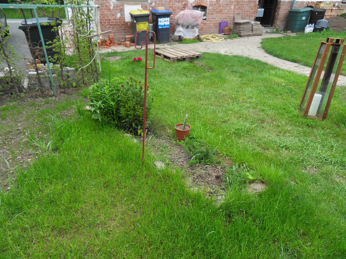 Der Schuppen ist nun fast fertig. Es fehlen nur noch die Scheiben oben. Der Fußweg am Giebel ist wieder als solcher benutzbar. Auch das STück hinerm Haus hat Fritz diese Woche neu gemacht. Ich hab dem Hof einen Wasserhahn verpasst. Dann hab ich noch den Bereich unter der Hecke bissel aufgehübscht.