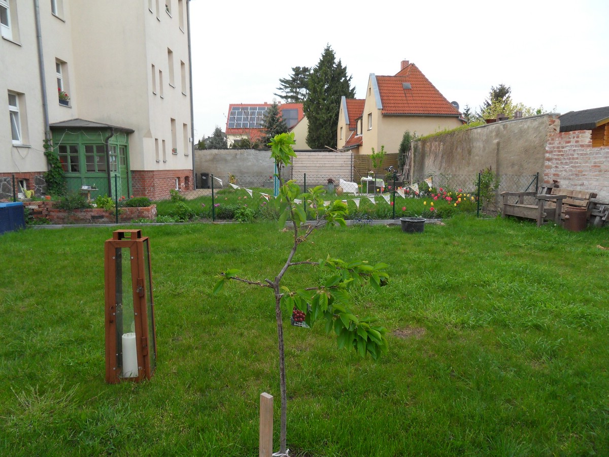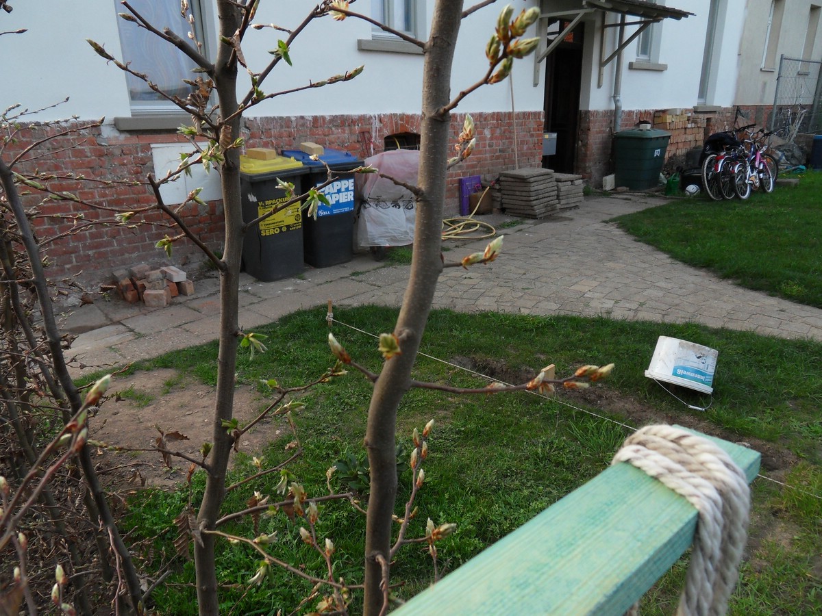 lässt die neue Kirsche blühen, auch die Hecke zeigt erstes Grün. In den Beeten sprießt es ebenfalls.